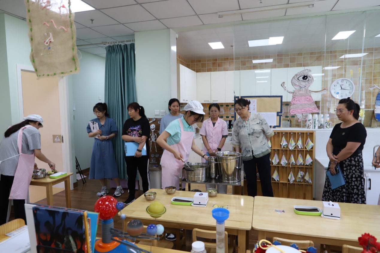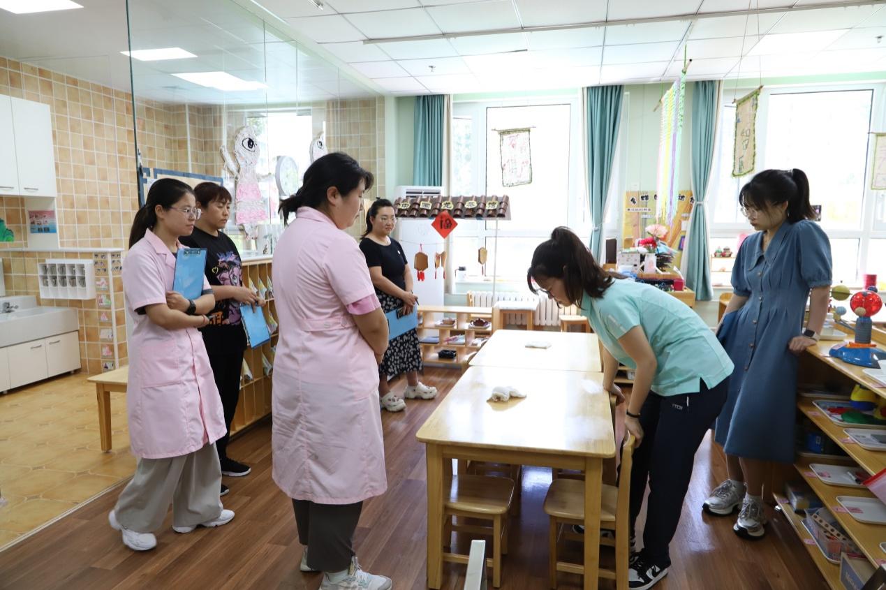 为促进园所各岗教师的专业发展,增进各园保育工作交流,进一步规范新保育员老师工作流程,提升保育工作质量,在培训中心的组织下,2024年6月12日上午明光分部接待了由总部江克玲老师带队,来自校本部园、望京分园的保健主管和优秀保育员员共同参与的团队,开放了我园新保育员王思佳老师半日工作常规活动,接受集团的指导和园所之间的学习交流。