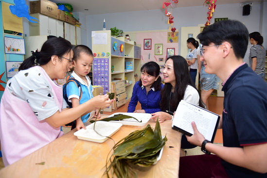 朝阳区学前教研室黄培老师和丁振鹏老师与孩子亲切互动