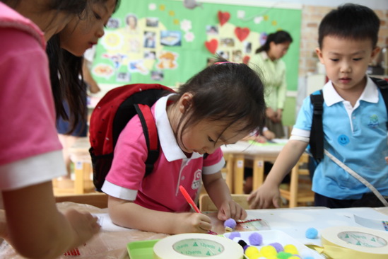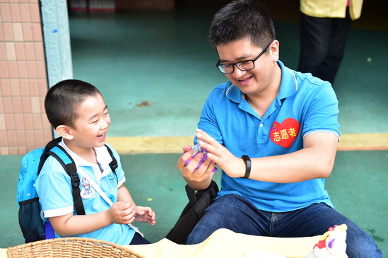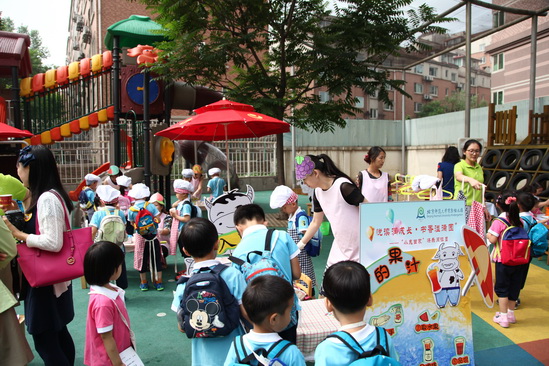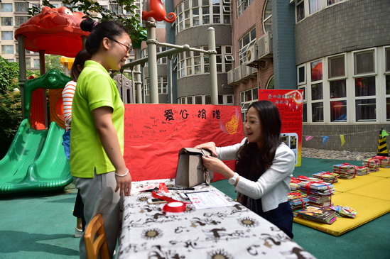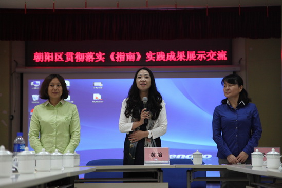 朝阳区学前教研室黄培老师参与孩子们的捐赠活动,