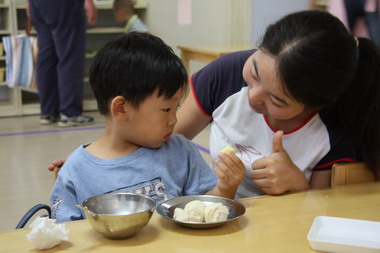 王果丽老师是来婴二班帮忙的老师,非常有耐心