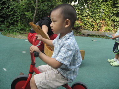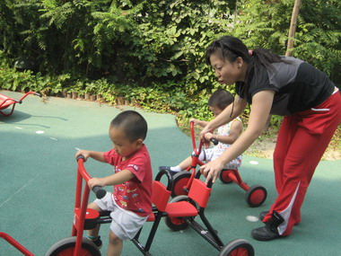 为了迎接婴班小朋友,吸引他们参加游戏活动从而降低分离焦虑,幼儿园在开学初又购置了一批美观安全多种样式的户外车,看看孩子们玩得多带劲!