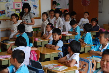 和小学生一起上课