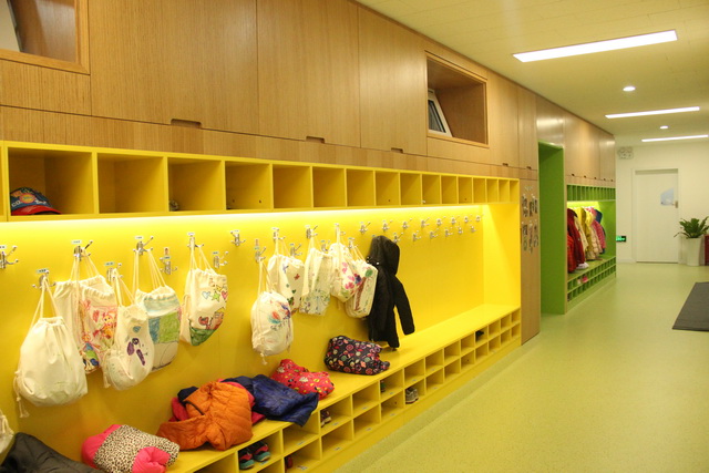 2016年7月-9月,正规滚球app官方网站望京分园经历了为期三个月的装修。在10月8日正式开园前,滚球app与家长志愿者一起齐心协力、加班加点共同完成了幼儿园的搬家和开园准备工作。一夜之间望京分园像是被施了魔法一样,焕然一新、绚丽多彩地出现在大家面前。为了充分发挥环境作为“第三位教师” 的作用,在开学后的第一个月滚球app通过一系列“环境创设”专题教研和实践,帮助教师从色彩搭配、空间规划、幼儿发展、区域环境创设等多个方面把握了环境创设的原则和方法,让幼儿园的每一个角落都能体现出环境的审美和教育价值。在区域环境创设方面,滚球app延续了上个学期在阅读区所作的探索,有效地迁移了创设“以儿童为本”支持幼儿主动学习的区域环境创设经验,继续开展了美劳区、自然角、科学区、建构区的专题教研,帮助教师明确了各区域幼儿的核心经验和创设方法,提升了班级环境的整体质量。下面就跟随滚球app的镜头,一起走进这所多彩的童趣乐园吧!