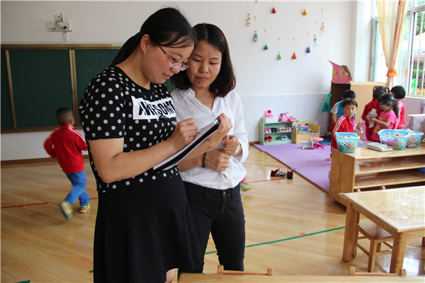 同时,支教团队还深入班级,对班级环境创设、区域材料的投放及区域活动的组织与指导等问题进行了深层次、有针对性的指导,在互动交流和实地研讨中帮助老师们明晰了区域活动的组织与实施。