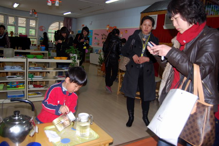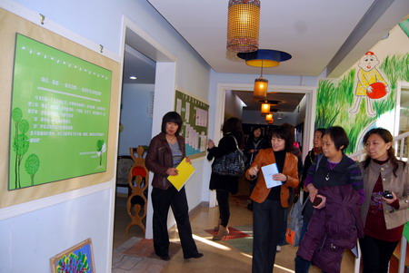 3月17日至18日,作为2010年新一批的北京市示范园之一,我园迎来了面向全市的开放活动,两天共接待了来自各区县的幼儿园园长、骨干教师共300余人参观。从晨间入园环节到教育活动、生活活动、区域活动以及户外活动,参观教师全程跟随。我园开放自主的教育理念、艺术化的教育环境等给参观者留下深刻印象。 北京教科院早教所姚老师来园参观 以树为主题的大厅环境布置 特级教师沈心燕来园参观