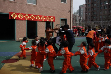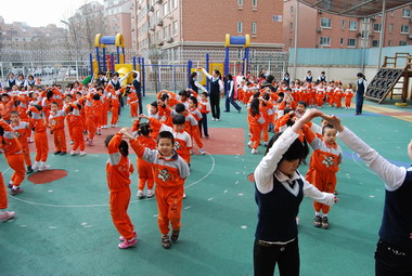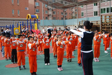 配合幼儿园让幼儿身着园服,营造幼儿园整