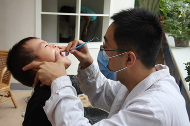 滚球app排好队,耐心等医生叔叔给滚球app检查牙齿!