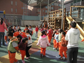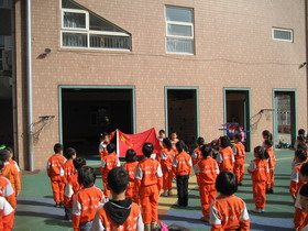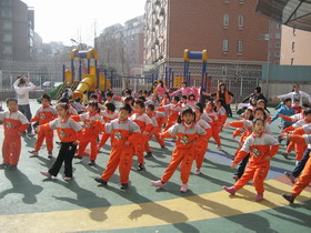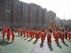 “升国旗、做新操”——从本学期起大班幼儿每周一穿园服、升国旗,规范幼儿规则意识、爱国情感及集体荣誉感。
