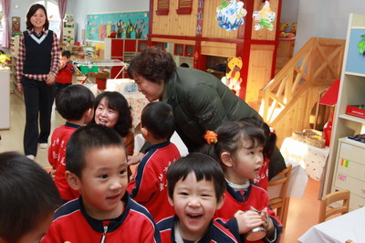 张处长与幼儿交流
