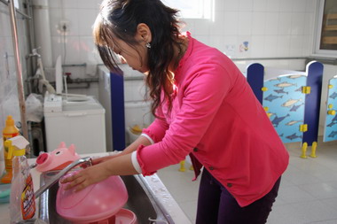 今天在幼儿园里,随处都可以看到教学班或后勤的老师们忙碌的身影,为了明日幼儿的归来,大家都在积极地做着准备,看看老师们都在做什么呢?
