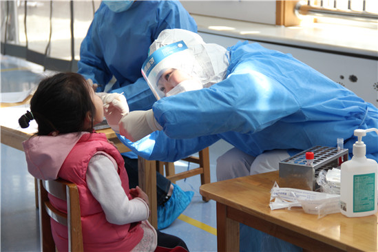 望京分园保健医为幼儿做核酸检测