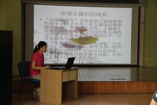 为了更好地“传承、借鉴、学习、分享”师大各园主题、区域和公共环境的创设, 百年园庆结束之际,望京分园主班教师和助理教师在园长和保教主任的带领下分别对其它各园的环境进行了观摩和学习。在参观过程中,每位教师都有针对性地选择了自己关注的点,并总结成图文并茂的PPT,先在年级组内分享,讨论和确定分享的主题后,由三位教师分别汇报给全园的教师。