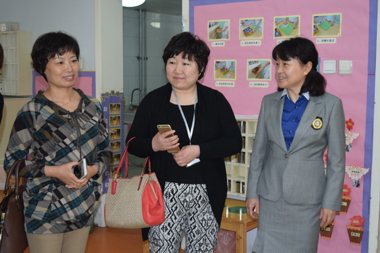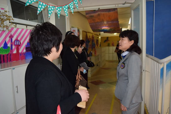 2015年4月23日,望京分园接待了朝阳区第四教研大组20所幼儿园共36名园长、教师及资料员的参观。根据上次联动教研的安排,当天参观的学习分为两组进行:一组由望京分园园长徐翠凤带领各园园长参观幼儿园的园所环境;另一组由资料室老师王丽带领各园资料员对资料室的管理工作进行了参观和学习。通过细致地讲解,各园资料员对资料室如何记录和管理幼儿园的各种文字、影像和图书资料有了全面的了解,也对望京分园有序的资料管理工作给予了高度的评价。随后各园教师参观了望京分园的开放式主题大厅环境、区域环境和班级环境,通过互动式的交流对望京分园的园所环境和教育理念有了全面的了解并给予了充分的肯定。