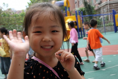 刚入园的婴班小朋友也露出可爱憨厚的笑容,实属难得