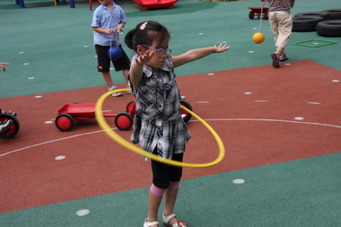 在玩体育游戏的小二班小朋友