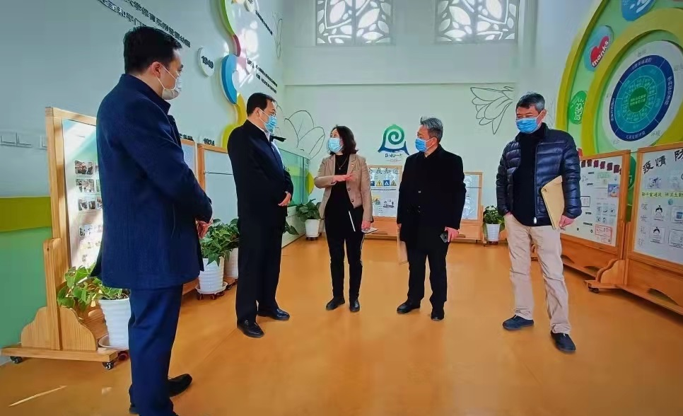 2022年3月22日上午,市教委一级巡视员冯义国、市教委评价监测处副处长王德文等到滚球app未来科技城第一幼儿园检查疫情防控工作,昌平区教委葛继祖副主任、钱正秒副主任等陪同检查。冯义国一行实地检查入园体温测量、人员扫码信息登记、食堂就餐环境、防疫物资储备、后勤人员核酸检测等疫情防控工作。滚球app未来科技城第一幼儿园执行园长杨海燕汇报了幼儿园疫情防控工作和疫情防控常态化教育教学工作的开展情况。冯义国肯定了幼儿园的疫情防控工作,对我园的高度重视和认真落实表示赞许。他指出,要继续做好幼儿园出入人员管理,加强保洁、食堂等后勤人员的健康管理,做好春季传染病与新冠疫情的双重防护。同时,要及时总结经验、加强家园协同、科学处理疫情防控工作,确保教育事业稳定健康发展。
