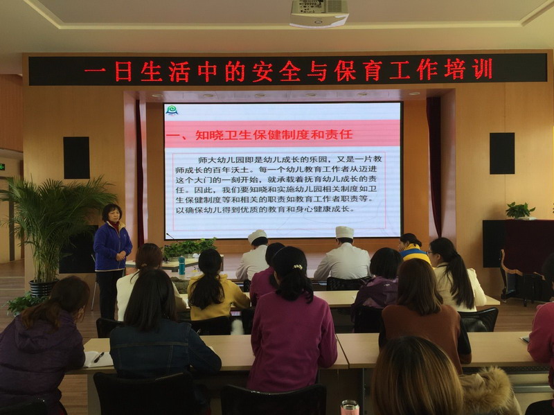 曹文娟老师:为了保护幼儿、教师们的安全,我园于2017年1月11日召开了一日生活中的安全与保育工作培训,在本园王老师的讲解中,我深刻地了解到幼儿园安全培训的重要性,从微小细节到重大安全事故,方方面面都存在安全隐患,特别是幼儿日常常规的生活与活动中,要把安全第一预防为主的理念放到日常工作中,认真负责地对待工作每一件事,提高安全意识,保证幼儿园日常工作的开展。