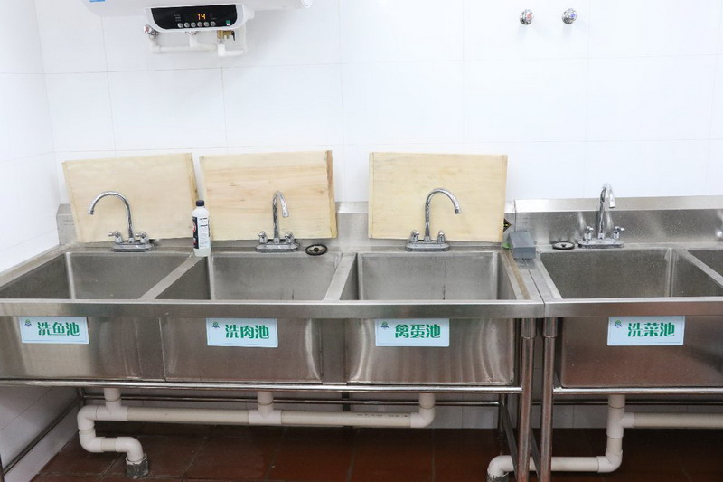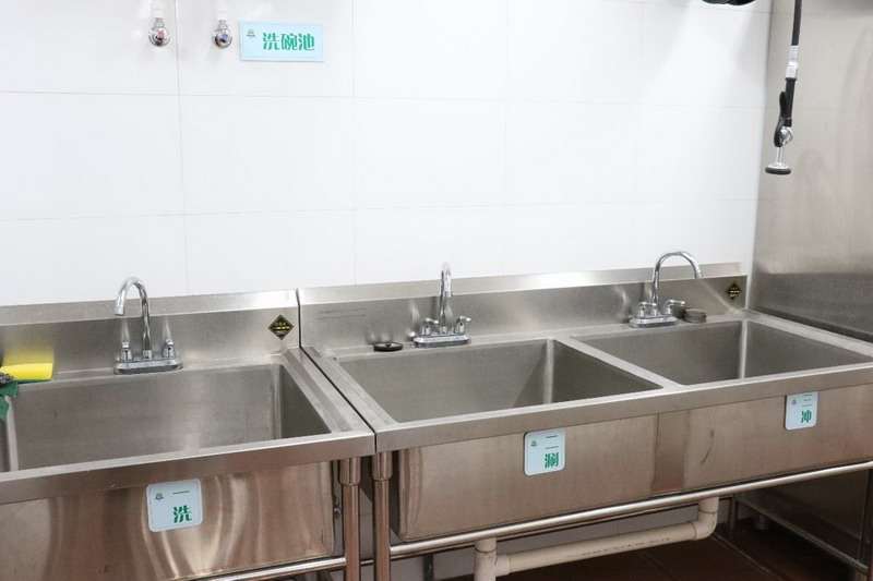 细心的厨房师傅们将洗碗的顺序以及餐食种类分别标注在每个水池边,严格按照幼儿卫生饮食标准,将各项厨房作业标准化,努力为孩子和教师们提供安全、美味、健康、营养的饭菜。