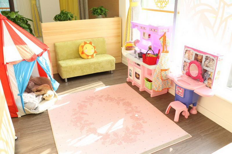 娃娃家游戏区可以扩展、丰富幼儿的生活体验,给孩子们家一般的温暖,教师也可以与幼儿共同商讨、决定角色内容,梳妆台、燃气灶、菜篮、水池等生活模拟设施及用品激发了幼儿参加游戏的愿望,并体验付出与谦让。