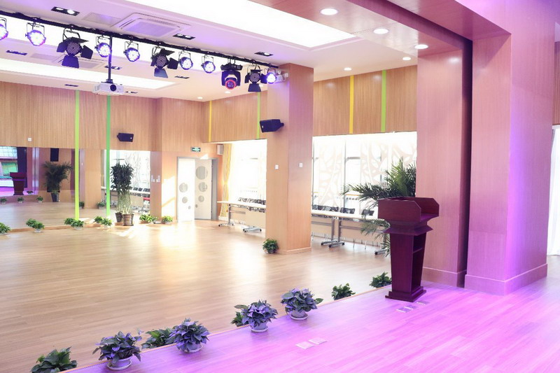 多功能厅的设计高端大气,配备了各种功能的信息化电器设备,满足幼儿、教师、家长不同的活动需求,明亮的舞蹈镜可以让孩子和教师们自信地展示优美的舞姿,可移动的窗内花格既大方又艺术。