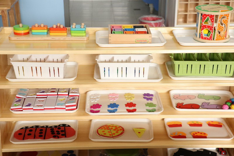 班级教室正在向孩子们敞开怀抱,这里将是孩子们的天堂。其中益智区可以调动幼儿充分运用五官观察比较,感受物体的形状,识别物体的颜色,比较物体的大小、长短、高矮、粗细,理解形体的等分,激发幼儿对数学的兴趣,促进幼儿数学概念的发展,幼儿的分析、综合、推理、概括能力得以发展,他们的天赋和潜能将在智慧的光环里熠熠发光。