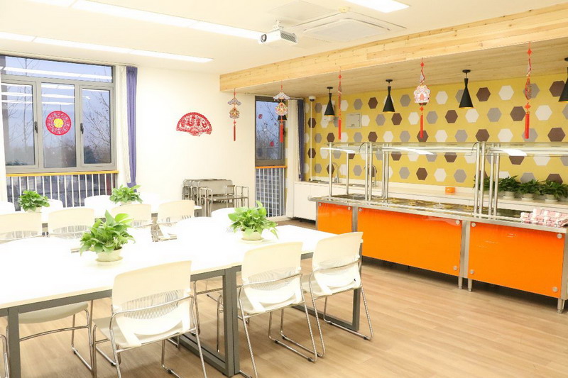 现代风格的餐厅与简约风格的壁纸、别具匠心的吊灯完美搭配,仿佛能听到老师们用餐时的欢声笑语。