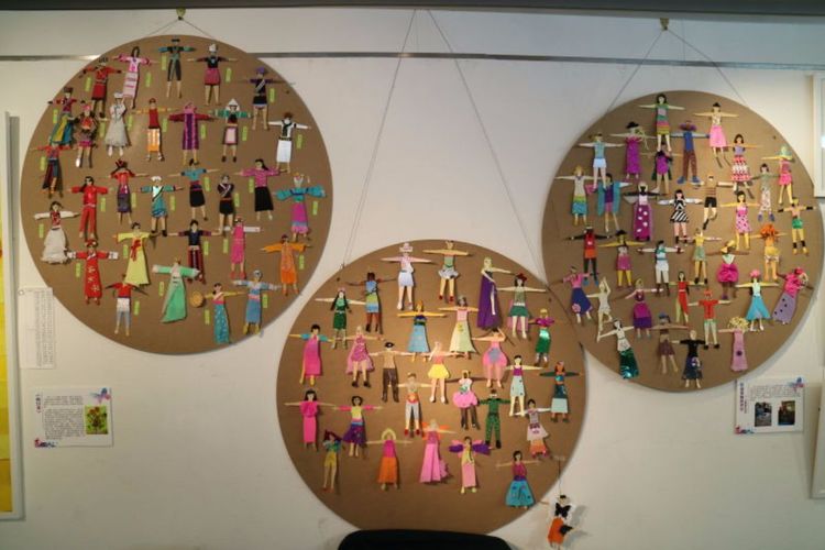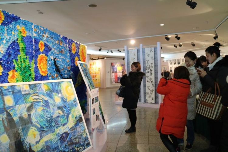 “废旧物”也能被孩子们变成一件艺术品,小小的空间里有孩子们大大的世界,创意无限,魅力无边,由瓶盖粘贴成的画作给予了老师们震撼的视觉享受。