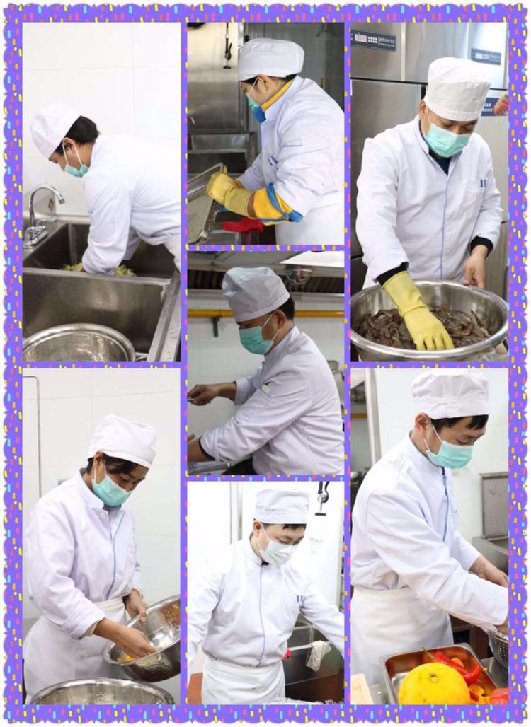 后勤老师们一大早就忙碌起来,准备工作紧锣密鼓地进行着,两园的的厨房师傅们,正在准备色、香、味、美俱全的美食。他们巧夺天工,不辞辛苦,为老师们准备美食。相信老师们一定会吃到家的味道、家的感觉、家的温暖,衷心祝福师傅们新春快乐!