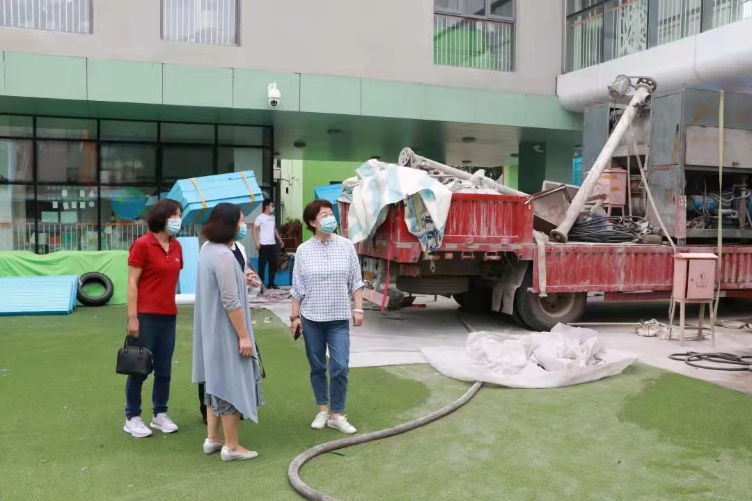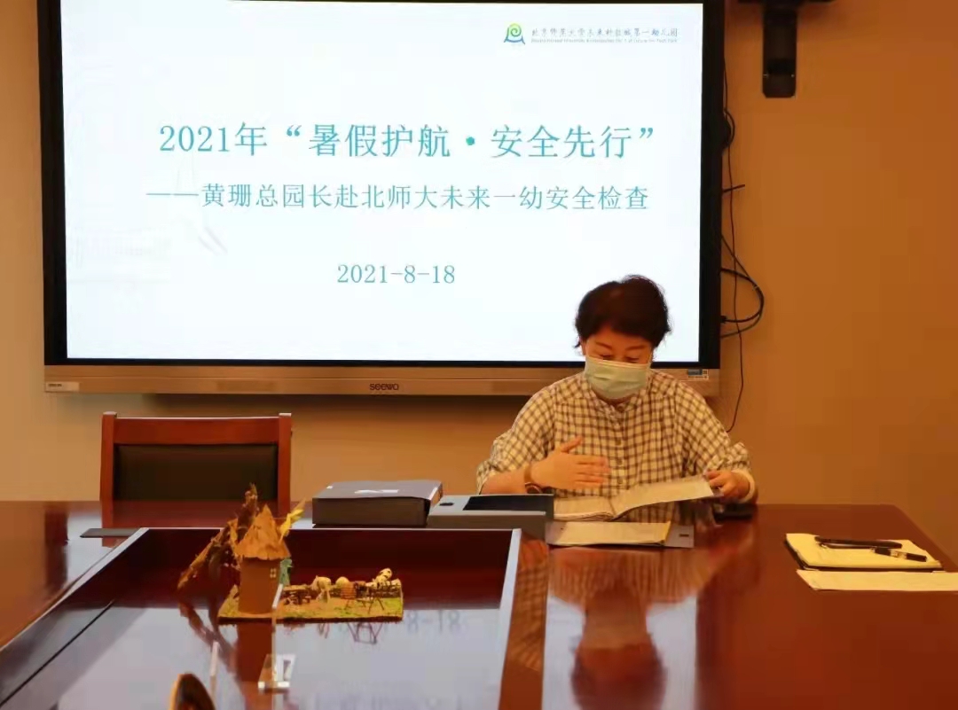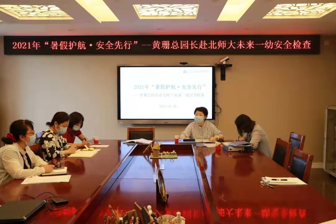 黄珊总园长首先听取了未来一幼执行园长杨海燕关于幼儿园暑期工程安全管理、疫情防控管理、教职工宿舍安全管理、暑期防汛安全工作管理等方面的汇报。然后,黄珊总园长重点检查了幼儿园防水工程进展、热电供暖工程进展、暑期值班等工作,仔细询问了疫情期间幼儿园教职工的生活情况、全园师生返京现状、教职工住宿安全情况,叮嘱做好新入职教师培训等工作。最后,黄珊总园长对各项安全工作提出了具体要求: