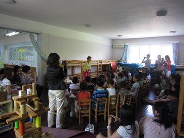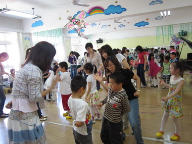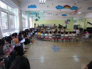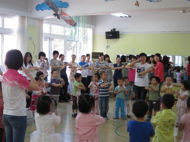 吕霞老师“学唱‘摇篮’”课上观摩者和孩子们友好互动
