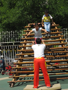 杨光老师“滚球app去探险” 中孩子们挑战困难的现场