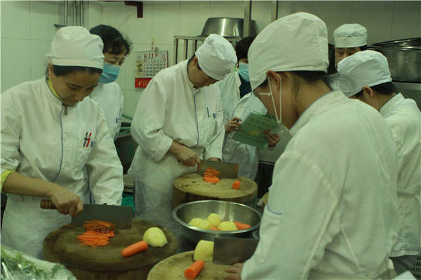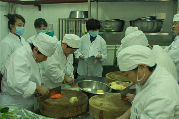 为提高幼儿园厨房员工的业务技能,营造“赶、学、比、拼”的工作氛围,2016年11月15日,校本部园后勤部门组织了一场别开生面的“亮厨艺 展风采”技能大赛,16名厨房员工参加了此次比赛。 比赛内容包括理论答题和实践操作两部分。其中,“理论答题”部分的考核涉及食品卫生安全、操作细则及操作规范性等内容。“实践操作”部分的考核,分为炒菜、切菜、面点三个比赛项目,每个厨房员工自选其中一组参加比赛。后勤主任江老师与保健医代表组成评委组,从看、闻、形、尝、速度五个指标进行评分。 比赛开始前,江老师就本次比赛的目的、比赛内容、评分规则等方面进行了说明,并鼓励大家积极参赛。比赛过程中,各位师傅都是全身心地投入,每个流程一丝不苟、娴熟操作,充分展现了自己最好的厨艺水平,成为后勤工作中一道亮丽的风景线。最后,评委团为每组评选出的一名优秀奖获得者颁发奖状。 厨房员工也纷纷表态,将会以本次比赛为契机,认真研究营养搭配和菜品创新,不断提升个人业务水平,努力让食堂工作再上一个新台阶。