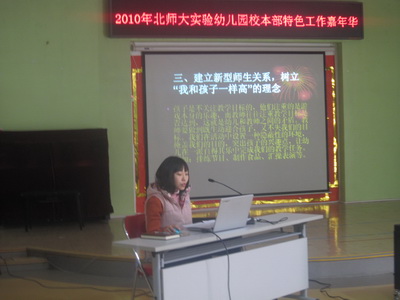 为更好地迎接新学期工作的开展,2010年2月26日,校本部园全体主班教师参加了在多功能厅举行的“2010年正规滚球app官方网站本部特色工作嘉年华”经验分享活动。校本部园执行园长杜军在会上首先介绍了开展本次活动的初衷,之后韩丹、滕瑾和王晓晔三位老师分别做了“如何促进幼儿参与大型活动主动性”“家园合作的基础”“如何写好班级工作总结”的报告,从多个角度分享了他们在班级工作方面的经验,使在座的老师受益匪浅,对自己新学期的工作有了更为明晰的认识。三位老师报告结束后,杜园长对三位老师的报告进行了简要的评述,对老师们新学期的工作提出了殷切的期望。同时杜园长就校本部园论坛在上学期的使用情况进行了“有效利用论坛平台,提升家园互动质量”的总结报告,让在座教师从生动直观地明晰了网络论坛的结构,特征和使用方法。此次校本部园特色工作嘉年华活动为新学期各班各项工作的顺利开展营造了一个积极向上的氛围,极大地鼓舞了在座老师的工作热情。