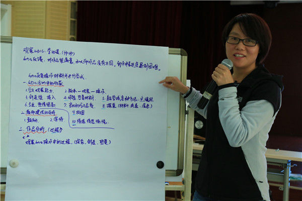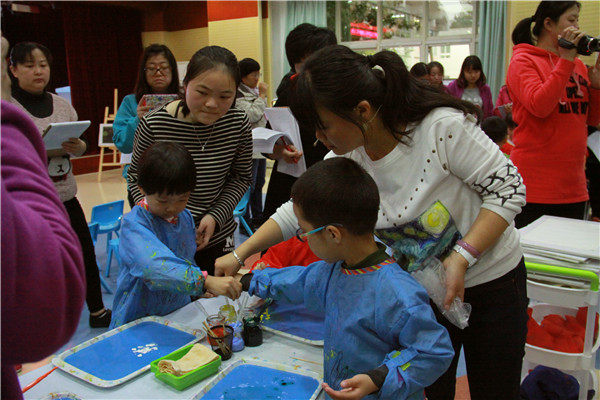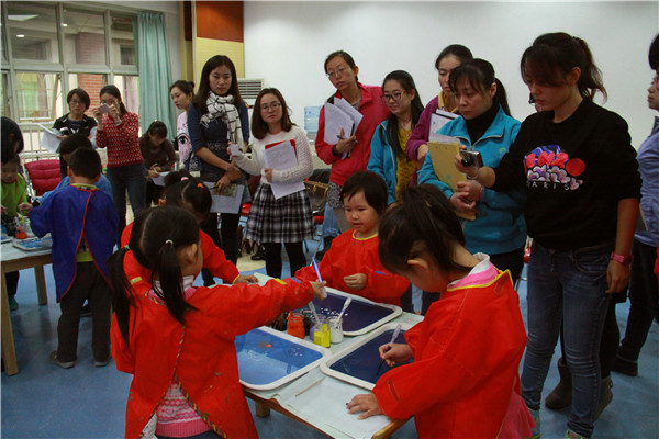 11月10日,校本部将“骨干教师专业引领”教学观摩与研讨和总部的“班长工作坊”培训模式进行整合,活动当天来自校本部园、牡丹分园、望京分园、奥林分园的约50名班长老师参加了活动。活动主题:"激发幼儿创作兴趣,解读幼儿美术作品",采用了教学观摩与研讨、专家讲座的形式,有效提升了班长教师对幼儿美术创作过程的观察能力、对幼儿的能力水平和年龄特点的把握能力以及对幼儿美术作品的分析能力,活动取得了预期的效果。