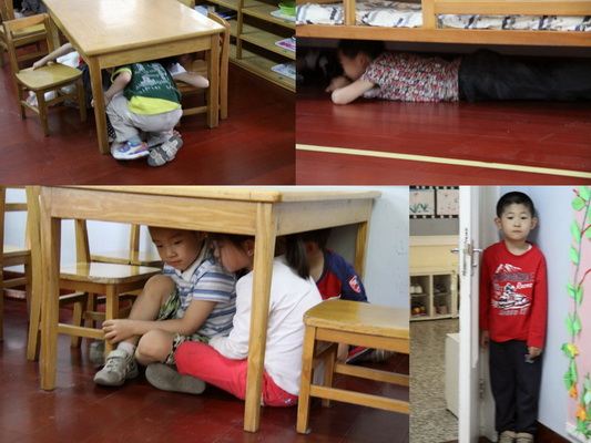 下午三点一刻,我园全体师生进行了防震演习和消防疏散演习。由总务主任张婷婷老师宣布演习开始,中大班进行班级内防震躲避演习,一分钟后,全园各班在班级教师以及各岗教师的协助下,进行消防逃生演习。在2分钟内,全园师生全部安全疏散到校园东操场。张老师针对演习情况与小朋友进行亲切交流,让小朋友们明确,当突发事件发生时,不要惊慌,听从老师安排,一个跟一个的逃离危险的现场。