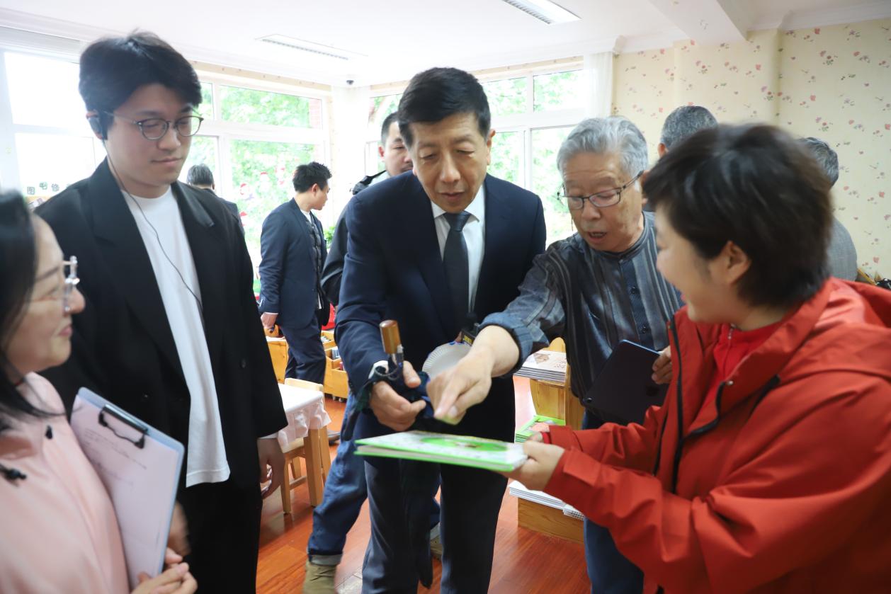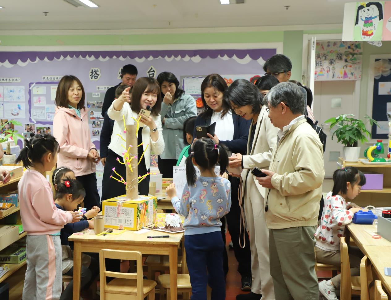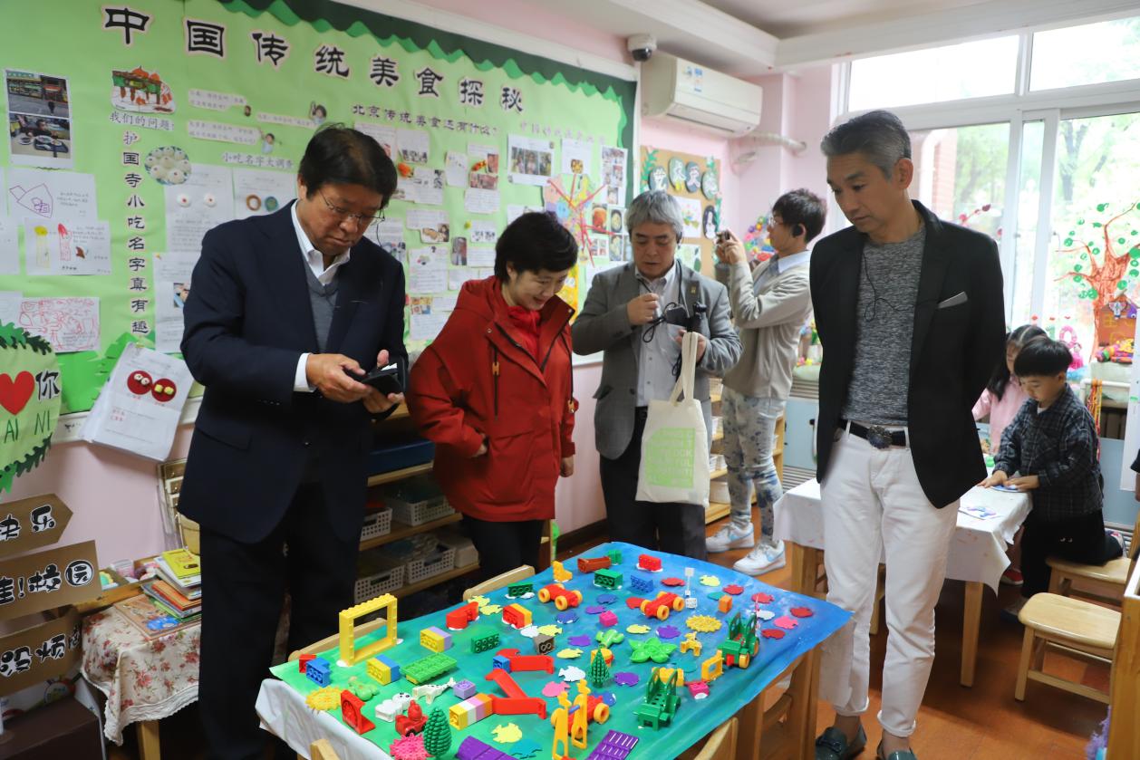 濛濛细雨中,交流团一行在我园管理团队带领下走进班级,观摩幼儿室内游戏,与教师和幼儿友好交流,近距离感受师生蓬勃向上的精神风貌;通过聆听管理者对班级环境和公共环境的解读,深入了解园所独特的文化底蕴和浓厚的教育氛围。在图书馆内,丰富的阅读资源和幼儿自主阅读的场景吸引了日本嘉宾的目光,他们对幼儿园在信息技术方面的创新实践频频称赞。