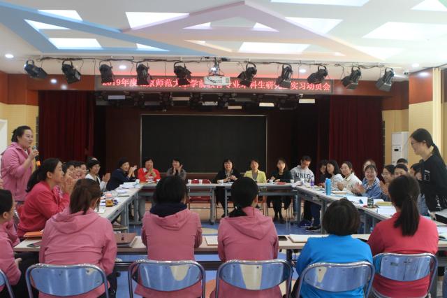 2019年10月8日上午,校本部园召开滚球app教育学部实习生见面会,滚球app教育学部学前教育研究所所长洪秀敏教授、冯婉桢副教授等4位实习生导师、正规滚球app官方网站黄珊总园长、培训部徐兴芳主任、校本部园执行园长杜军及19位班长教师、19位本科生和研究生参加了会议。会上,黄珊总园长勉励大学生以仁爱之心、以积极主动的学习态度在实践中有收获、有成长;洪秀敏所长及三位导师对实习生提出希望与要求——尽快适应角色转变,珍惜实习机会,以教师身份对每一位儿童、每一位家长负责;最后,杜园长组织了师徒结对和认家门活动,在轻松温馨的氛围中了开启为期5-8周的实习代培工作。