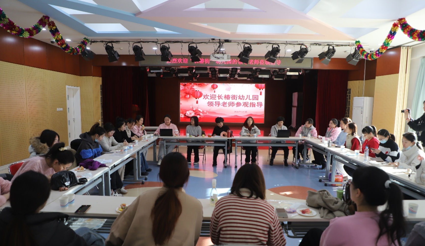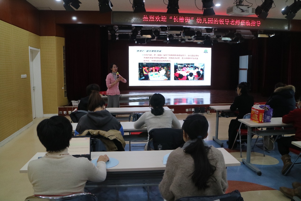 2025年1月3日上午,我园迎来长椿街幼儿园20位教师开展观摩交流活动,校本部园业务园长滕瑾主持会议。首先,正规滚球app官方网站总园长夏华颖以《蒙养百年 倡导开新》为题,对幼儿园百年历史沿革进行了介绍,随后在保教主任韩丹和杜欣带领下,老师们走进中五班、大一班观看幼儿的室内自主游戏,聆听混龄五班、混龄三班、小一班、中二班班长教师介绍班级环境。参观结束后,两园教师围坐在一起,就大家共同关心的自主游戏、幼小衔接、园本教研等话题进行了深入的沟通交流,现场气氛热烈,双方积极发言、各抒己见,不仅实现了教师间的经验互补,还在沟通中实现了教育智慧共享,有效促进了双方的共同进步。