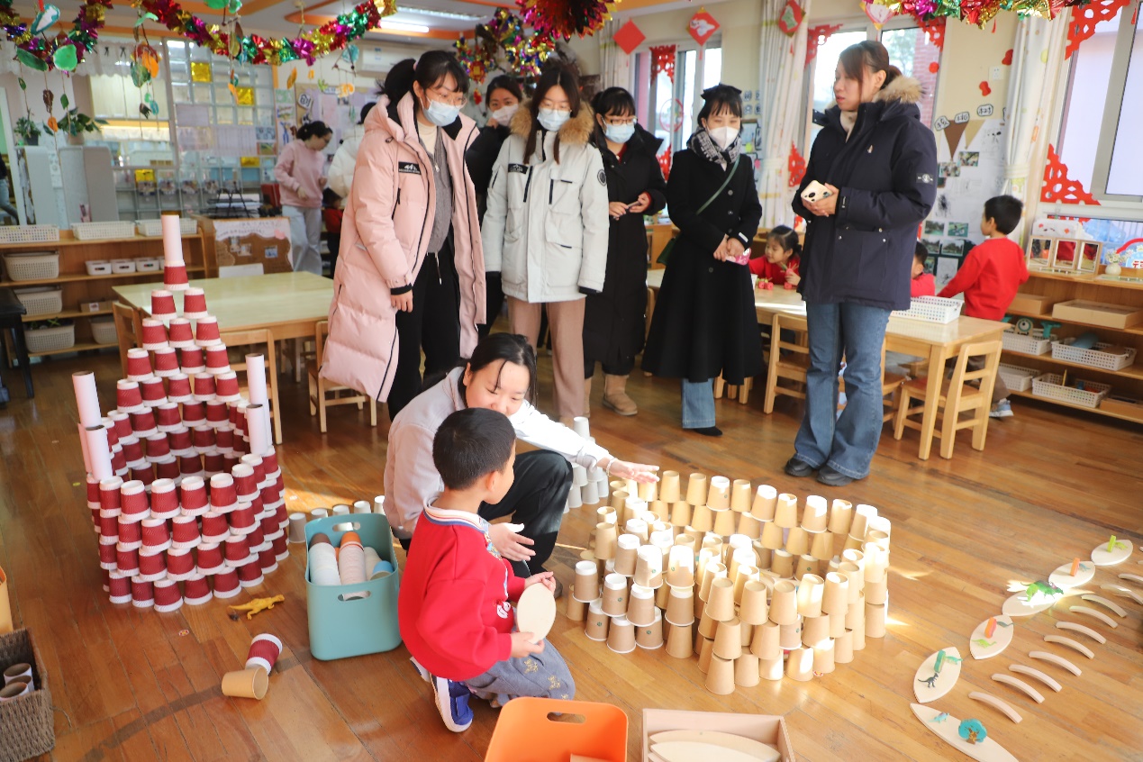 老师们走进班级观摩幼儿室内自主游戏和班级环境