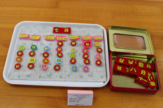 本次玩教具展评共展出了25个班级的100件玩教具,参展玩教具涉及生活区、美术区、益智区、数学区、语言区、文化区、科学区、棋类区八个区。