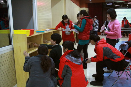 为帮助教师更有针对性地把握区域目标,确保区域材料的目标性、层次性与丰富性,并为我园进一步的课题研究找准探究方向与切入点,校本部园于上学期末开展了由园长、保教主任、教研员及各班班长组成的团队,进入各班进行区域观摩,主要聆听班长教师对自然角、建构区、美术区、数学区四个区域的创建思路、目标定位、具体材料投放等情况介绍。通过活动,幼儿园管理层对全园四个区域的创设现状、经验、特色、问题等,无论从横向还是纵向都有了较全面的了解。