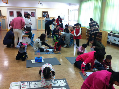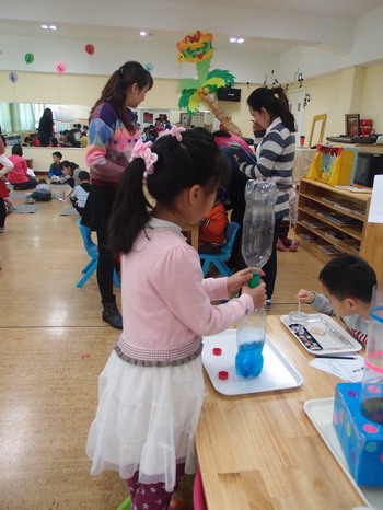 1月9日,全托部将教师本学期自制的玩教具汇集到音乐教室,并按区域打造成一个蒙氏教室,然后再从各班邀请不同年龄段的孩子走进教师精心设计和制作的“蒙氏教室”,让幼儿自由选择、操作这些教具,通过个体操作教具让孩子去感受不同教具的精美和内在目标,教师则分别充当观察者和指导者的角色。之后,教师组织幼儿围成圆圈,针对“我喜欢的教具”进行谈话,通过谈话让教师更加深刻地体会到操作性强、好玩、有趣是孩子选择教具的关键,从而帮助教师对教具制作目的有了更直观地体验。最后,主任带领老师通过研讨共同梳理了玩教具制作的层次、内涵和注意事项,让教师对教具制作有了更深入的认识。
