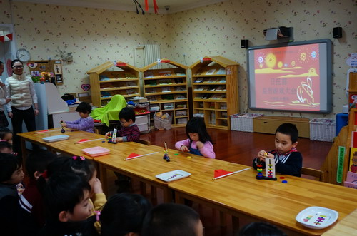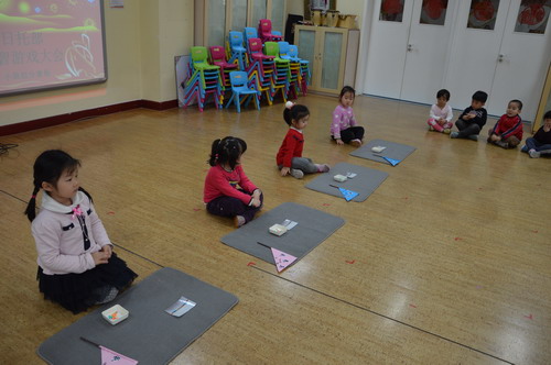 此活动从9月开学就开始筹备,前后经历了四个阶段:1.准备阶段:通过班员教研,根据本年龄段幼儿的年龄特点,选择和确定各年级组的参赛游戏项目,并通过共同讨论明确统一的游戏规则;2.学习阶段:随后,各班教师通过教学活动的方式,开展玩教具操作的展示,使幼儿了解玩具的玩法,并通过角区活动中幼儿的自主探索和操作进一步体验和熟悉玩具操作方法;3.初赛阶段:11月份开始,各班先以班级为单位,开展了各项玩教具的自报名和初赛阶段;4.决赛阶段:在幼儿已能熟练掌握游戏玩法、并且竞争、合作意识也有了明显提高的基础上,1月份进入决赛阶段。