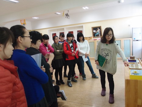 教师介绍自己负责区域的教具摆放思路