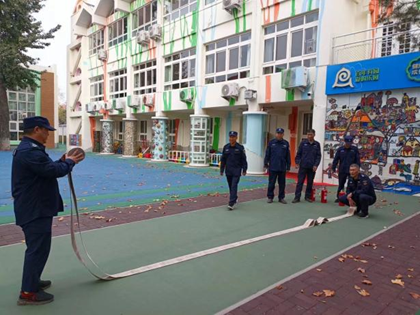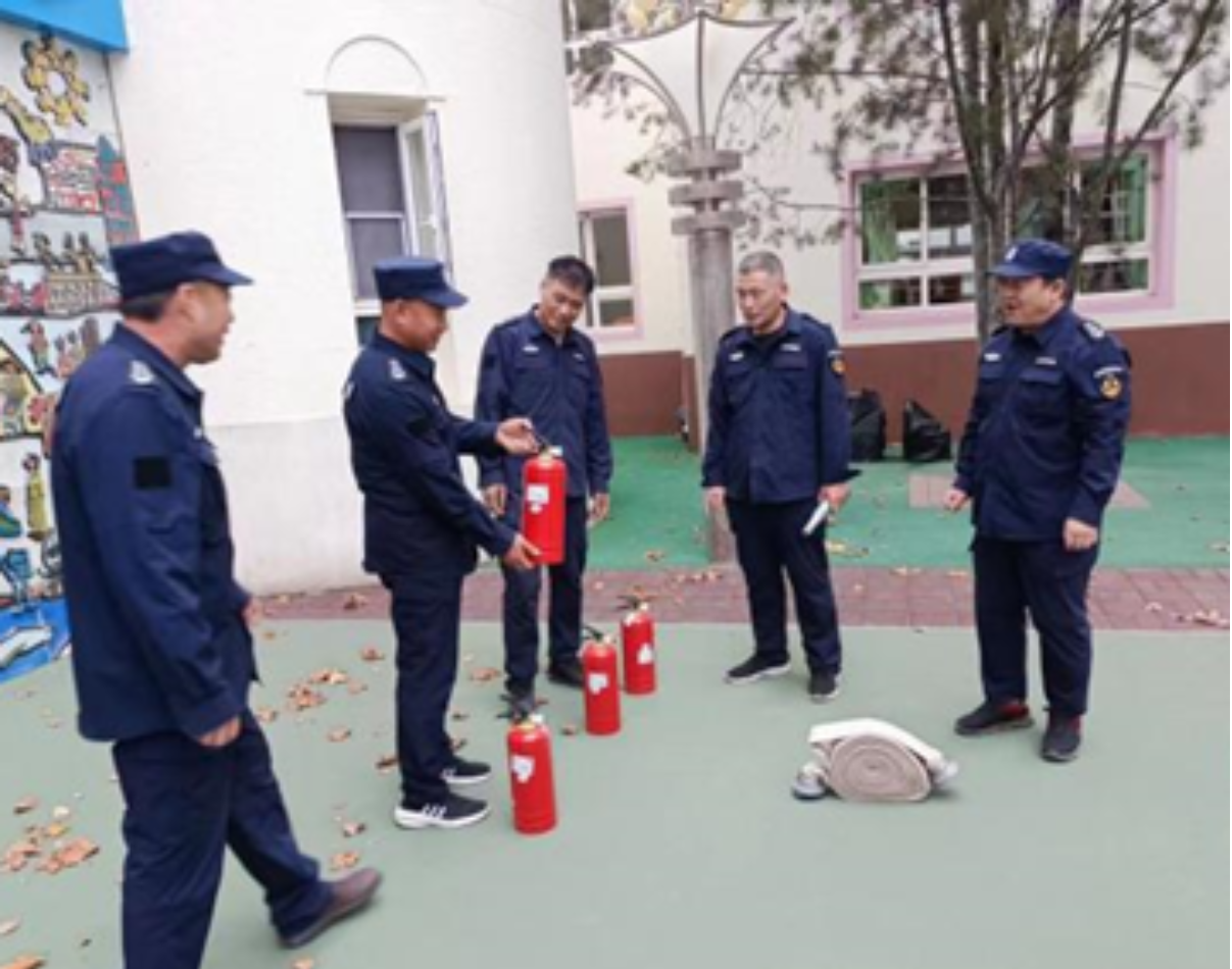 针对保安组,后勤主任王颖带领全体保安熟悉园所消防设施设备所在位置,正确掌握灭火器、消防栓和一键式报警器的操作方法,并进一步明确了在消防疏散演习中保安所应承担的职责,增强了保安人员安保服务能力和消防应急处置能力,为维护校园安全提供了有力保障。