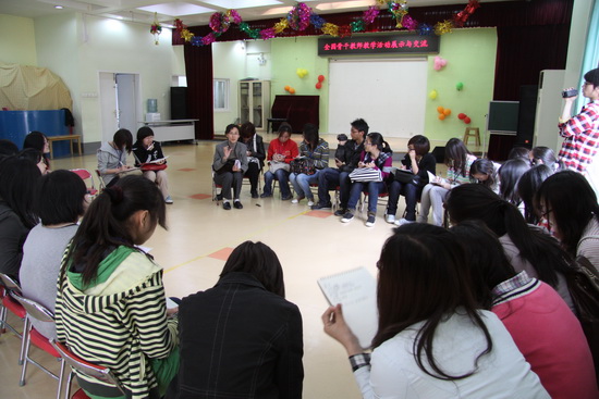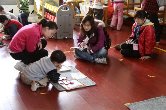 洪秀敏老师与2009级学生一起观摩社会性活动的组织与实施