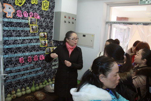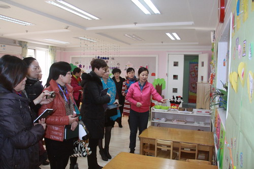 校本部执行园长杜军就幼儿园的基本情况、园所理念、发展特色进行了介绍,并结合我园“十二五”课题研究经验进行了《以儿童文本的幼儿园环境创设思考和实践》的专题讲座。随后由业务园长、保健主任分三组带领学员深入幼儿园各个公共环境以及班级,通过管理人员以及班级一线教师的具体介绍,让参观的学员们深刻感受到我园“以儿童文本”理念深入落实在教育的方方面面。