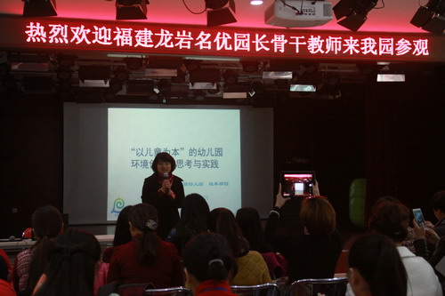 2014年11月17日“好老师发展中心”迎来了第一批培训学员——福建龙岩名优园长和市区级骨干教师、学科带头人为期五天的专项培训。我园于11月21日上午进行了接待。