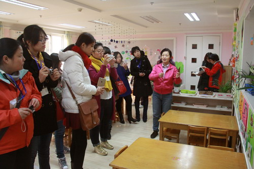2014年11月25日上午,在北京市学前教育处的组织下,我园作为面向北京市开放的十所幼儿园之一,接待了来自全市各区县的85位幼儿园园长、教师的校园文化建设现场观摩与交流。