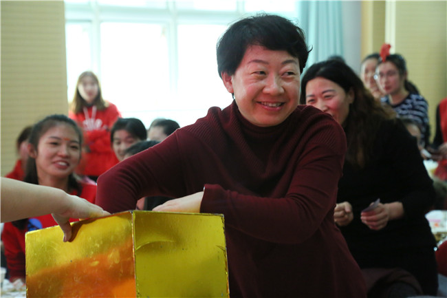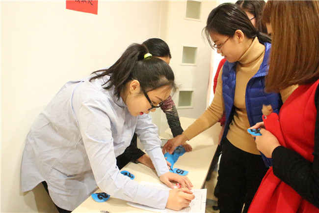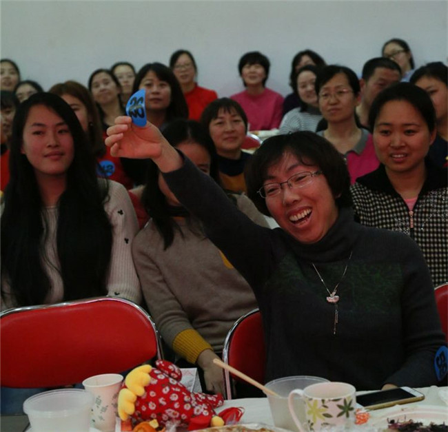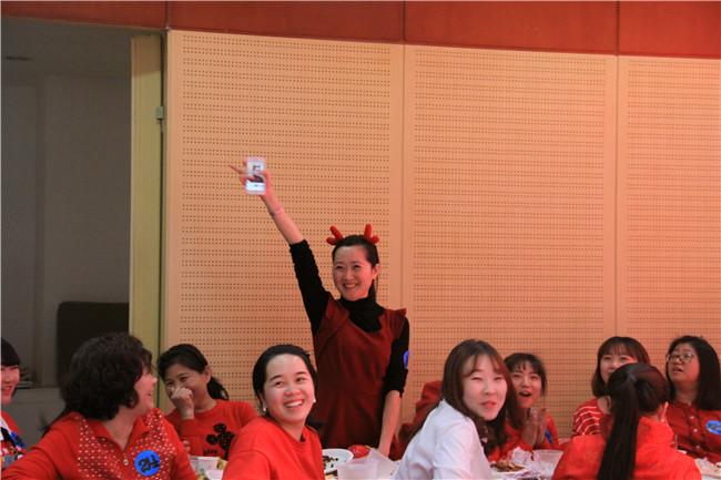 气氛热烈的是游艺环节,活动前每位教师自选一个号码,这个号码既是抽奖的幸运号也是参加游戏的游艺号,在主持人的安排下,所有老师都先后参加了“活字传递”““、”快乐接力”、“歌曲猜猜看”游艺活动,无论输赢,每位参与的教师都得到了礼物,非常开心。
